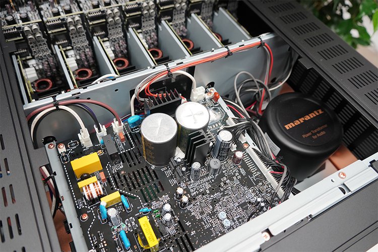 同社のラインナップにおける「10」のナンバリングは現在最上位を表す数字。つまりこの2モデルはCINEMAシリーズのフラグシップモデルに位置する。特に同社製パワーアンプは生産完了となって久しく新製品に期待も高まる。なお、製品仕様など具体はまだ明らかにされていないが、イベント会場ではトップパネルがあけられており、その中の構造をじっくりと見ることができた。