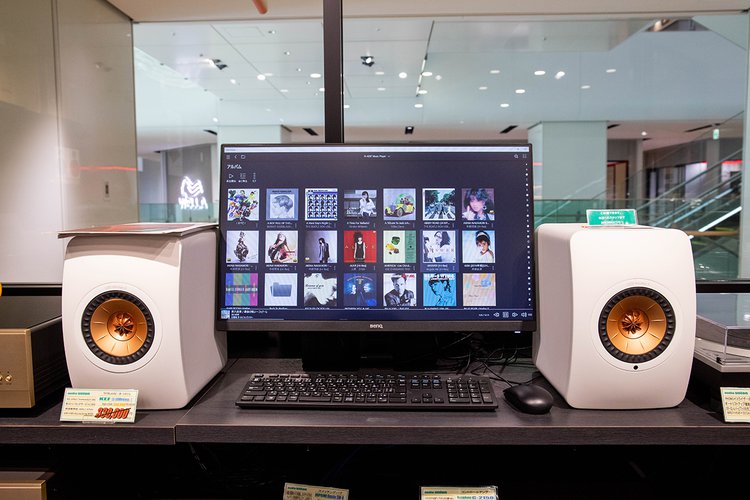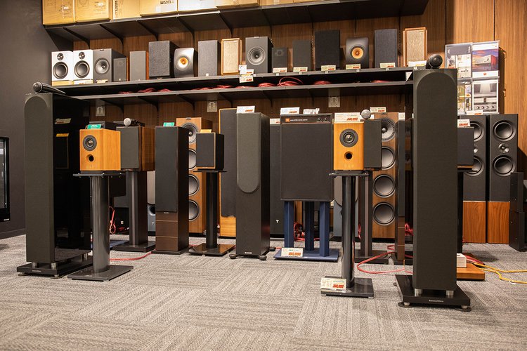 大阪駅の北側には大型のヨドバシカメラもあるため、展示する製品のラインナップは特にこだわってセレクトされている。アキュフェーズ、ラックスマン、エソテリックといった国産ブランドはもちろんのこと、B&Wやタンノイといった人気スピーカー、また棚の上にはフォーカル、マジコ等のハイエンドブランドもしっかり展開されている。
