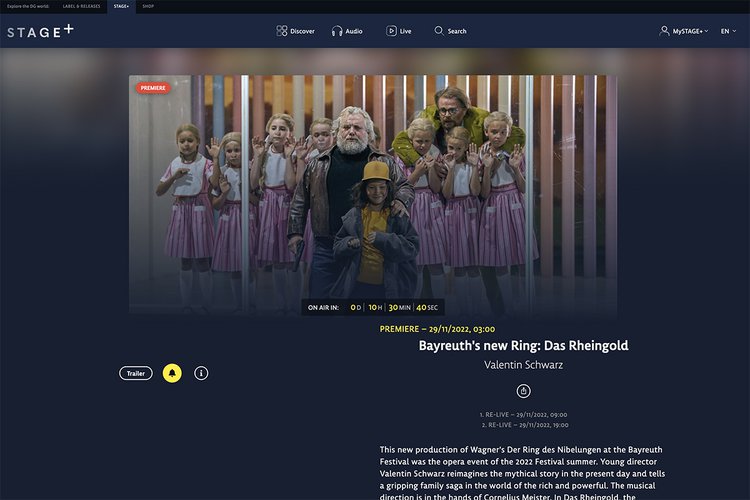 11月29日深夜3:00(日本時間)からは、今夏開催されたバイロイト音楽祭のストリーミング配信も行われ、「ニーベルングの指輪」が4夜に渡って放映される。また12月14日深夜4:30からは、ガーディナーによるバッハのクリスマス・オラトリオの生配信も予定されている。今後も週1回をめどにリアルタイム配信を行なっていく予定とのこと。