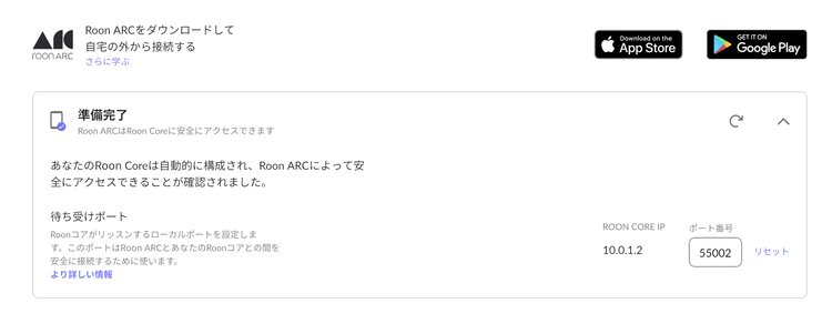 この設定完了後にRoonソフトウェアに戻り、Roon ARCをクリックすると、「準備完了 あなたのRoon Coreは自動的に構成され、Roon ARCによって安全にアクセスできることが確認されました」と、表示が切り替わるのが確認できる。