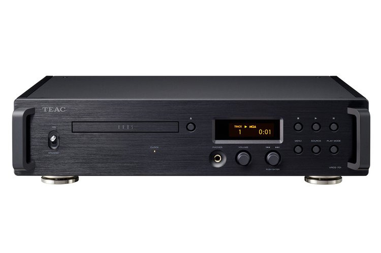 VRDS(Vibration-Free Rigid Dics-Clamping System)メカニズムは、CDを同径のアルミニウム製ターンテーブルでクランピングし、慣性質量を増大させることで回転振動や不要振動を低減させる独自のCDドライブ。「VRDS-701」は通常CDのほか、MQA-CDの再生にも対応する。