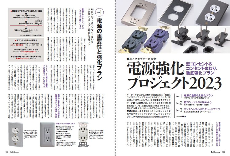 今号では、本誌の好評コーナー“重点アクセサリー研究”として、「電源強化プロジェクト2023」と題し、壁コンセント&コンセントまわり、徹底強化プランをご紹介しています。