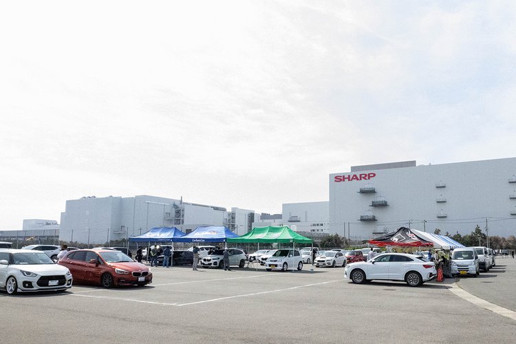 「春まいど」は、近い大阪府堺市の海沿い、「海とのふれあい広場」の第2駐車場で開催されている。海に面した広い公園の一画で、シャープの本社も近く開けた海風が心地よい。天候も上々で昼間は汗ばむほどの陽気のもと、全国各地から集結した車両がその「サウンドチューニング」のスキルを競い合った。