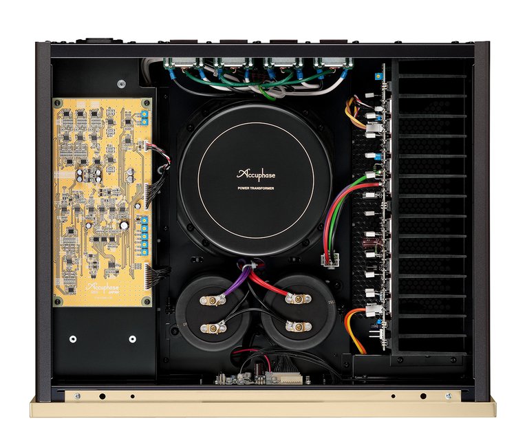 電源部は、新規設計の大容量トロイダルトランスと22,000μFの大型電解コンデンサを搭載する。出力周波数は、入力周波数に自動で同期し、50/60Hzに対応。出力波形の全高調波歪率は0.08%以下となっている。