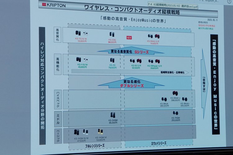 KS-11GとKS-33GもaptX adaptiveに対応させており、KS-33Gは48kHz/24bitの再生も実現する。また今後は、LDAC対応モデルのラインナップを広げていく意向もあるそうだ。