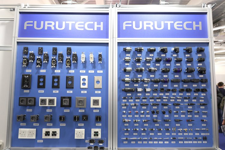 フルテックは1Fのアトリウム・ホール3に大型のブースを展開。ケーブルやNCF booster関連、電源関連アイテムはもちろん、各メーカーにOEM提供するスピーカーターミナルやコネクタ類も多数展示していた。