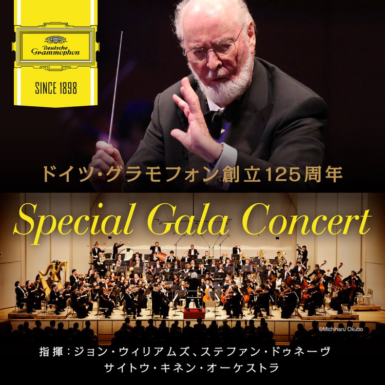 ドイツ・グラモフォンは今年で創立125周年を迎える世界最古のクラシック・レーベル。今回のコンサートでは、約30年ぶりの来日となるジョン・ウィリアムズとともに、世界的指揮者であるステファン・ドゥネーヴを招き、サイトウ・キネン・オーケストラが演奏する。