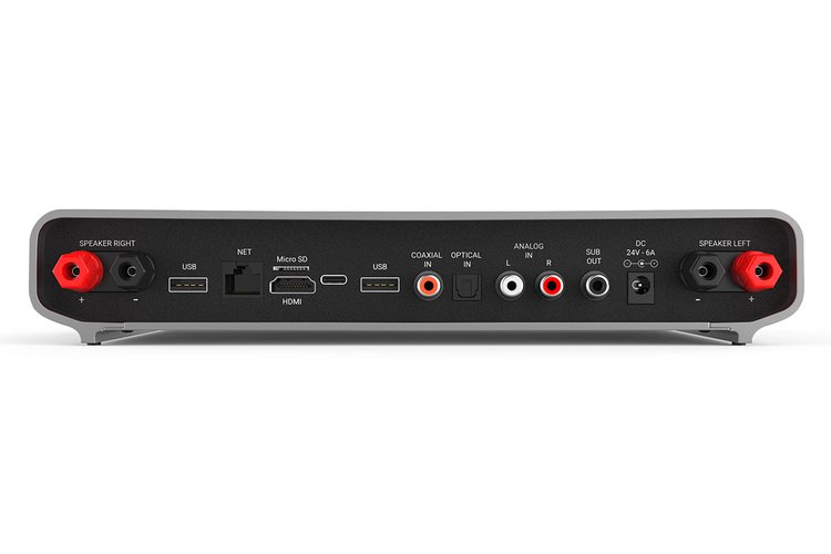アンプ部には、Infineon社のデュアルモノ・Dクラス・アンプモジュールを採用。またヘッドホンアンプにはTexas Instruments社製の「TPA6120A2」を搭載しておりヘッドホン再生にも利用できる。DACはTexas Instruments社製「PCM5122」を採用。