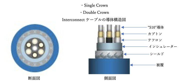 Double Crownは、さらにTriple Crownに近づけたモデルで、内部構造を踏襲することに加え、導体部の直径をSingle Crownの2倍以上にすることで、実用性をかねた屈曲性を実現。また広範囲のシールドが外部からの干渉を防ぎ、導体の性能を発揮させることができるとしている。