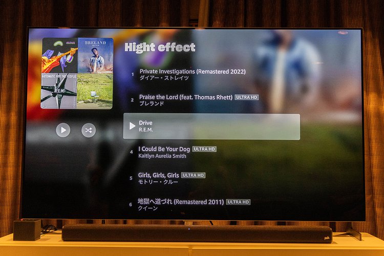 試聴室にて映像ならびに音楽コンテンツについてデモを体験した。特に印象的だったのは「SIGNA S4」のドルビーアトモスの効果。サウンドバーではなかなか回り込みの表現が難しい場合もあるが、たとえば『アバター:ウェイ・オブ・ウォーター』の水中のシーンでは、揺れる水草や仲間たちのしなやかな動きが上下左右方向にしっかり展開されて、まるで一緒に水の中を泳ぎわたっているような気分にさせてくれる。
