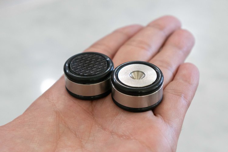 2000年発売の「KA-5010」をはじめ、インシュレーターの開発を長年続けているクリプトン。「IS-HR10」の表面パネルには、オリジナルの新素材である「ネオフェード・カーボンマトリックス3層材」を採用。上下のカーボン素材とネオフェードによって、機器の振動をスムーズに吸収し、高い減衰特性を実現している。本体には、ステンレス材を使用し、滑り止めとしてニトリルゴム素材のOリングを投入している。