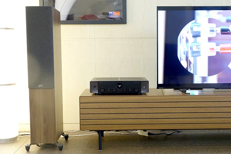 HDMI端子を搭載することでテレビなどとの接続も意識し、また、高さ109mmのスリムな筐体を採用することで、テレビ周りのラックに収めやすいよう配慮。プリアンプ部に独自の高速アンプモジュール「HDAM-SA2」を搭載するなど、音質面にもこだわりを多数投入しているほか、“新世代のマランツデザイン”によってインテリアにも溶け込むよう配慮している。