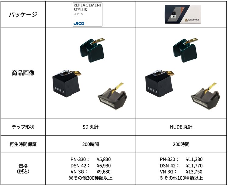JICO、合成無垢ダイヤモンドチップを発売。300種類以上の交換針が復活