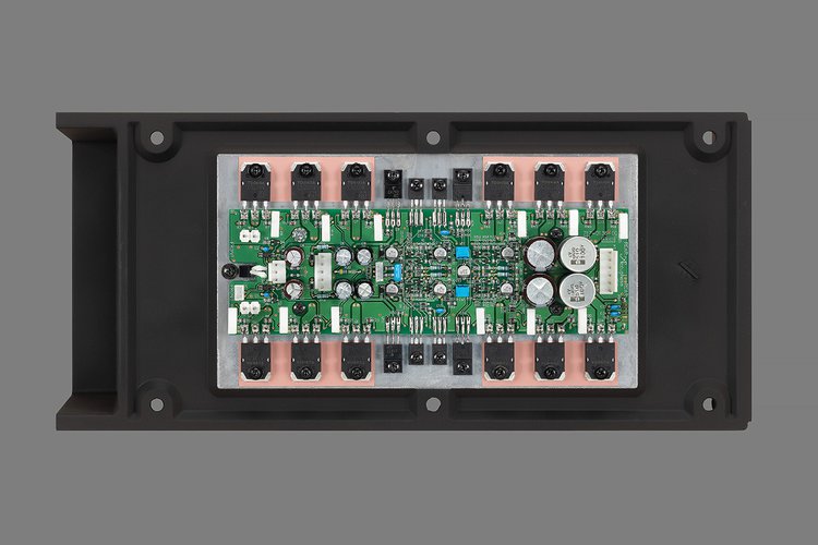 出力段は、バイポーラトランジスタの6パラレルプッシュプルで構成。3段ダーリントン接続により低インピーダンスのスピーカーも理想的に駆動するとしている。電圧増幅段を2並列駆動するMCS+により低雑音化も実現している。