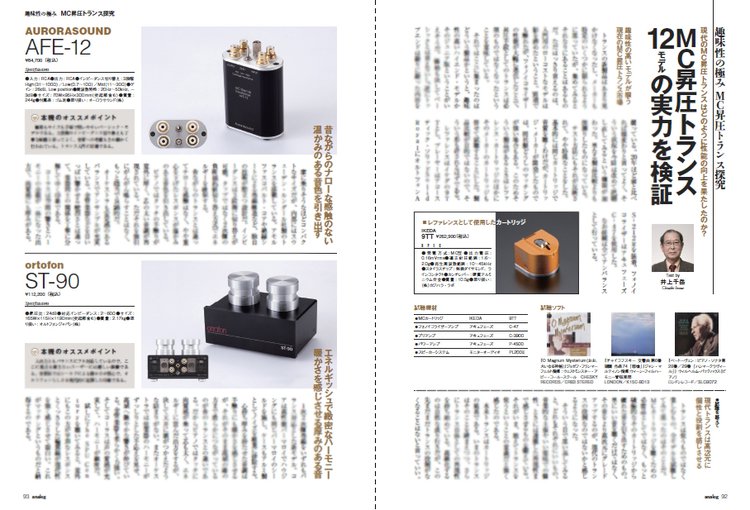 単にモノとしての「MC昇圧トランス」をご紹介するだけでなく、その背景と現状、使いこなしや選び方、さらに作り手の技術者の生声も併せて取り上げる、モノとヒトを生かして繋ぐ特集記事となっていますので、ぜひとも誌面をご覧下さい。