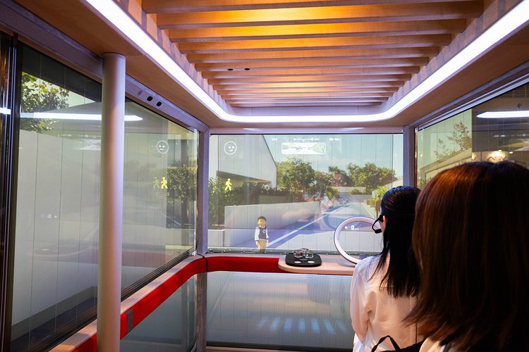 文字通り「リビングがそのまま移動する」といったイメージで、自宅のようにリラックスしながらドライブの景色を楽しんだり、外出先のレストランを予約したりといった体験ができる。センサーで周囲の環境を常にモニターしており、子供が飛び出してもすぐに停車できたり、高速道路での譲り合いといった、安全性にも配慮された自動運転への提案がなされている。