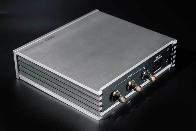 クロックジェネレーター「GTC1」はコアの回路部に高精度な恒温槽型水晶発振器(OCXO)と、発振安定性の高いサーモスタット、Titans Audio Labクロッキングテクノロジーを採用。10MHzのクロック出力(50Ω)を3系統装備する。サイズは190W×168D×49mm。