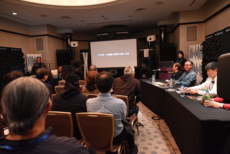 プレゼンターとして、レコーディングエンジニア、ミキシングエンジニアの吉田保氏、下川晴彦氏、小林悟氏、関口倫正氏という、かつての“行方洋一坊や連”が登壇。行方氏と一緒に手掛けてきた作品を再生しながら、氏の軌跡を語り合った。