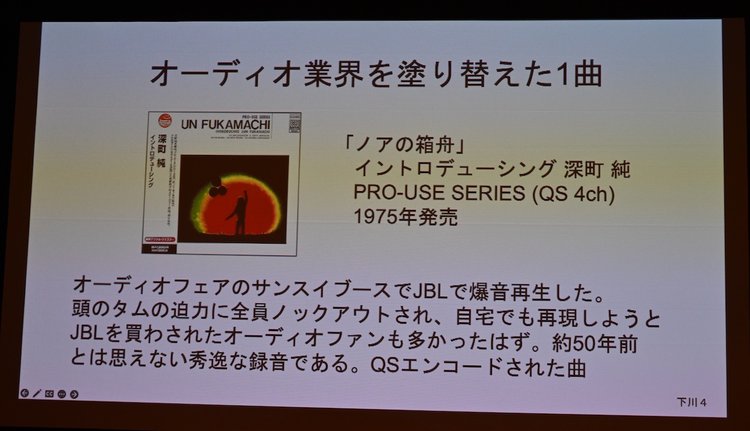 下川晴彦氏は、行方氏が録音の場面で効果音さえも自分で考案したことを語った。また、深町 純『イントロデューシング』より「ノアの箱舟 NOAH'S ARK」がオーディオフェアで爆音で再生され、オーディオファンを虜にした話を振り返った。