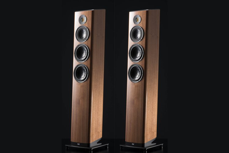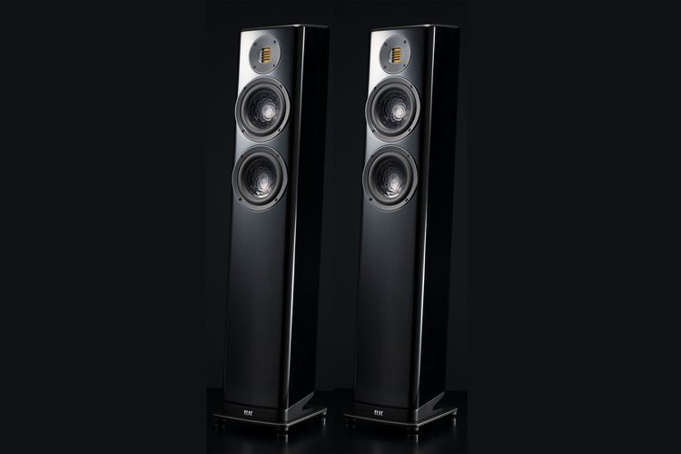 VELA FS 407.2は、2.5ウェイ・バスレフ型でJET6トゥイーター×1基、150mm AS-XRコーン ウーファー×2基を搭載。クロスオーバー周波数は450Hz/2.4kHz、周波数特性は30Hz〜50kHz、能率は88dB(2.83V/1m)、インピーダンスは4Ω。外形寸法は、229W×1000H×266Dmm、質量は19.1kg。