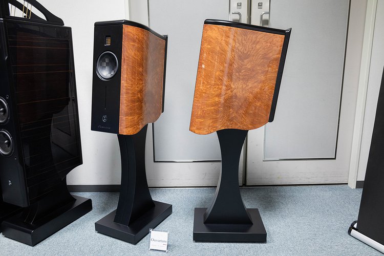 また、参考出品として「Ouverture」というブックシェルフスピーカーも登場。スタンドまで一体でデザインされたスピーカーで、曲線を多用した優美なデザインが特徴。横から見たキャビネットの仕上げは、天然の木材を使用しているためひとつひとつ異なるということで、今回の名古屋ショウでの反響を見て今後の取り扱いについて決めたいとしている。