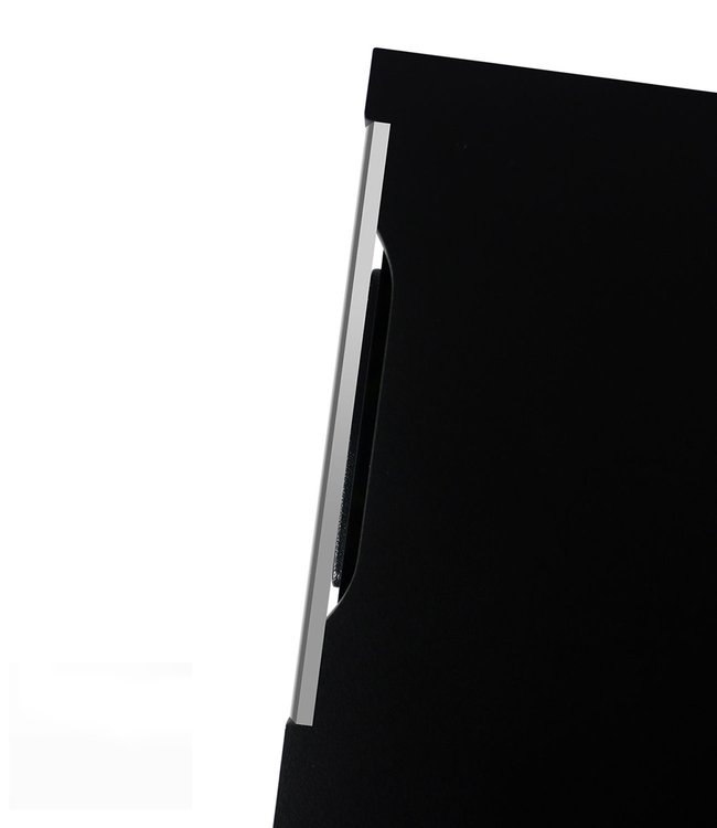 スピーカーシステムは、その名称が示すように5cmのフルレンジユニット部分に開口した厚さ4mmのアルミ製「マスク」を装着。デザイン性だけでなく、ユニット上下左右に十字状のスリットと、エンクロージャーとの接地側面にスペースを設けることで、ユニットからの音を正面と側面に分離。アルミ素材の金属的な共振と音の拡がりによる独特なライブサウンドを生み出すことを想定したと同社は説明する。