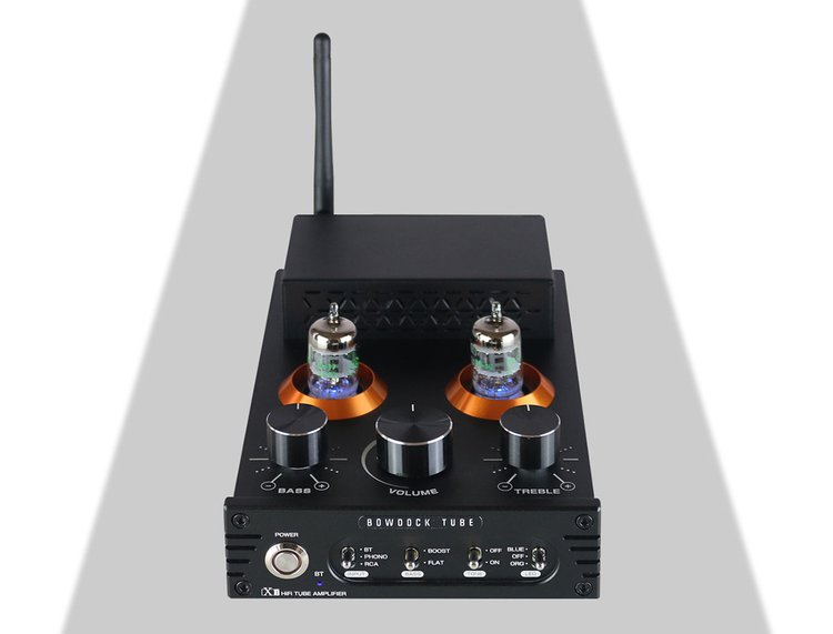 BOWDOCK TUBEは、「GE5654」真空管を2基搭載する真空管デジタルミニアンプ。アンプICとして「TDA7498E」、オペアンプに「NE5532」を装備し、最大出力80W + 80W(8Ω負荷)を実現した。