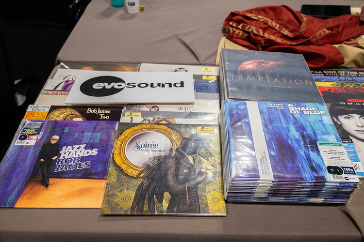RoonやQobuzを用いたストリーミング再生が主流なことはすでにレポートしたとおりだが、アメリカの出展者によれば「昨年よりレコード再生を扱うブースが大きく増えていますね」という声もあり、アナログブームはアメリカでもますます拡大しているようだ。1Fに設けられた高音質ソフト、中古レコードの販売ブースも賑わいを見せていた。