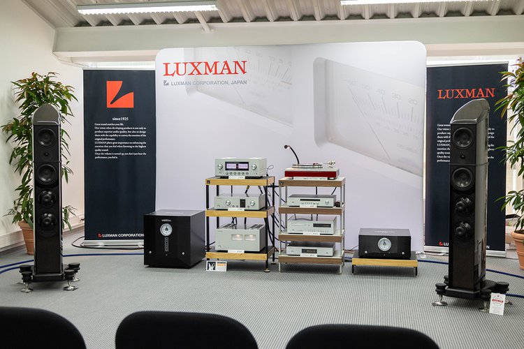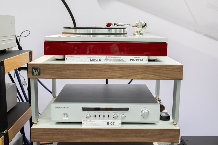 またAXPONAで発表されたフォノイコライザー「E-07」の反響も上々で、「製品はまだかという声を世界各国からいただいています」と社長の末吉氏。E-07の登場により、カートリッジからプレーヤー、フォノEQ、アンプまですべて自社で完結させることができるようになったラックスマン。会場ではウィルソン・ベネッシュのスピーカーと組み合わせてデモンストレーションが行われていた。