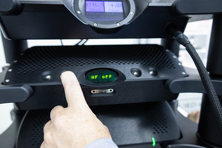 その下にあるのはアップスケーラー用の強化電源。強力なRFフィルターを搭載しており、「強化電源を加えることで、さらにウォームでスムーズな音を実現することができます」とのこと。