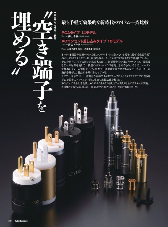 今回は、国内外のメーカーからさまざまなタイプが登場しているオーディオ機器や電源ボックスなど、コンポーネントの空いている端子に使う“空き端子系”のオーディオアクセサリーを集めて一斉比較レポートを掲載しています。
