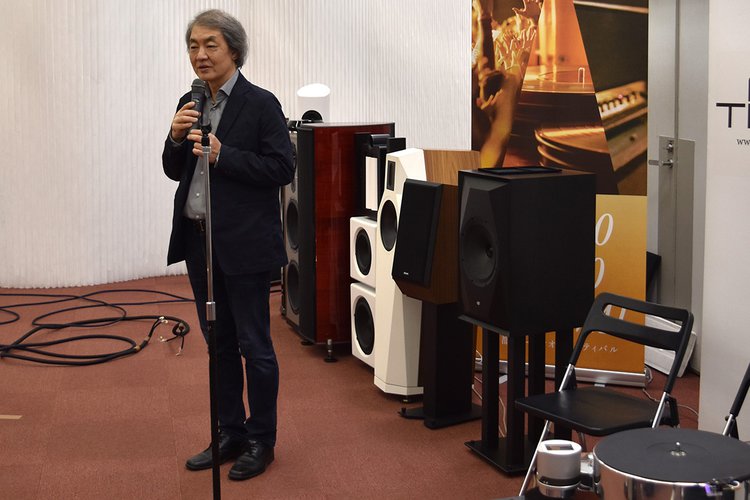 会場前方にオーディオシステムが組まれ、参加メーカーの主力ブランドの製品がその周りを囲む形。イベントの進行自体は初日の土曜日は山之内 正氏、日曜日は傅 信幸氏のオーディオ評論家が進行を担当し、午前中と午後の2回に分けて、約2時間ずつの講演を実施。各回ごとに再生システムとアンプは固定し、各社の主力スピーカーの比較試聴を両氏の思い入れのある音源の紹介とともに行っていき、終日席を離れずに聴き入っている来場者も多く見られた。