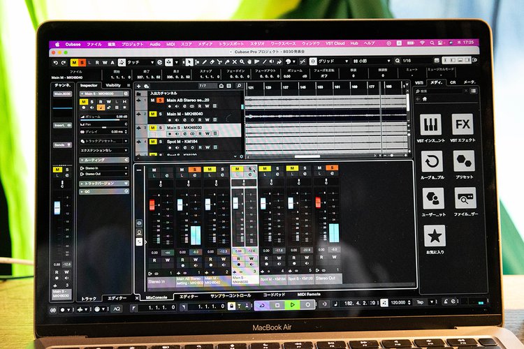 会場では、CubaseのDAWを用いた、ヘッドホンでMS方式(Midマイク・Sideマイクそれぞれ)と、AB方式を聴き比べる環境も用意されていた。Midマイクに対してどれくらいSideを加えることで、どのようなステレオイメージの変化があるのかを確認できる。マイクセッティングによる音の違いは非常に興味深く、音楽制作のさらなる可能性を感じさせてくれた。