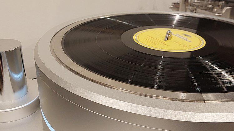 さらに、プラッター自体の回転時の揺れに対応するため、高重量プラッターの上面に、特殊な液体を封入した別体トップ・プラッターを搭載。プラッターが回転すると、独自配合の液体が遠心力に従って外周部に寄り、プラッターの揺れを大幅に抑制する。これにより、ターンテーブル本体に対して水平で安定的な回転が可能になったとのこと。