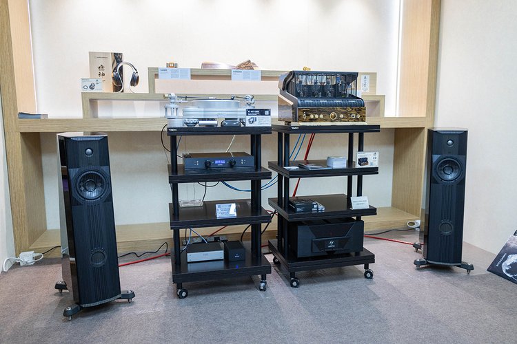 また、「鳴神」については贅沢にプリアンプとして使用し、スピーカーを駆動するデモンストレーションエリアも設けている。アコースティック・ソリッドのアナログプレーヤーに、最新のカートリッジ「AT-ART1000X」組み合わせたまさにハイエンドなシステムで、真空管の旨味をたっぷり引き出してくる。