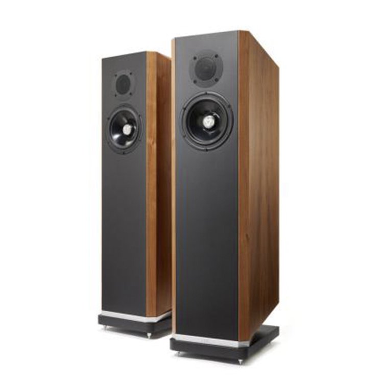 2.5ウェイ・バスレフ型、29mm径トゥイーター、220mm径ミッドウーファー、220mm径ウーファー、周波数特性20Hz - 30kHz、感度91dB、インピーダンス8Ω、 外形寸法348W×1,168H×404Dmm、質量75kg。
