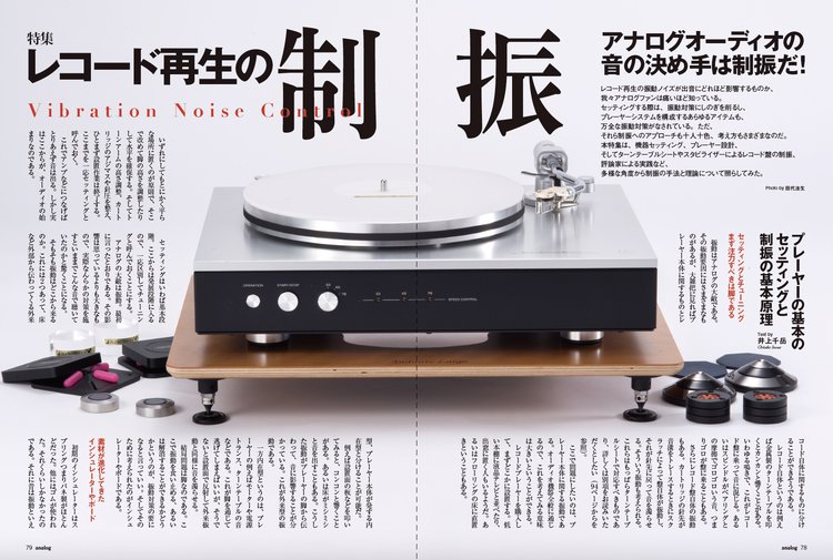 特集は「レコード再生の制振」です。レコード再生の振動ノイズが出音にどれほど影響するものか、アナログファンは痛いほど知っていますね。本特集では多様な角度から制振の手法と理論について照らしてみました。