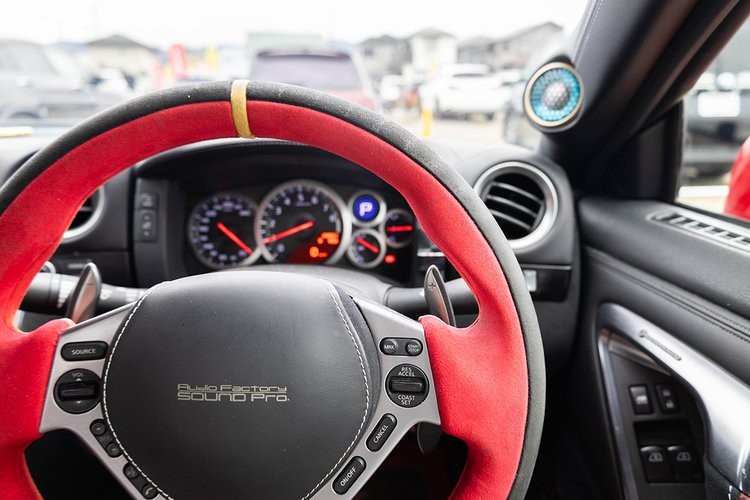 荒川区のオーディオファクトリーサウンドプロのデモカーは、日産の「R35 GT-R」。赤と黒で仕上げた精悍な内装もクールで、いかにも走りっぷりも良さそうだ。オリオスペックのカーオーディオ向けPC「canarino 12V」を組み込み、foobar2000を活用したオーディオ再生を追求している。いまカーオーディオ市場ではDAPを使っての再生が主流となっているが、「プロショップとして、あえてDAPを使わない再生を追求したいんです」と店長の竹原さん。曲の再生などはiPadのアプリをいれて操作できるようにしている。