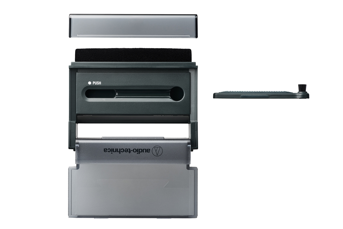 AT6028はレコード盤とレコード針のメンテナンスができるレコードクリーナーに、ジャケットスタンドを一体化させた3in1モデル。こちらは専用モデルではなく、初めてのアナログメンテナンスツールとしてもおすすめできるツールとアピールする。