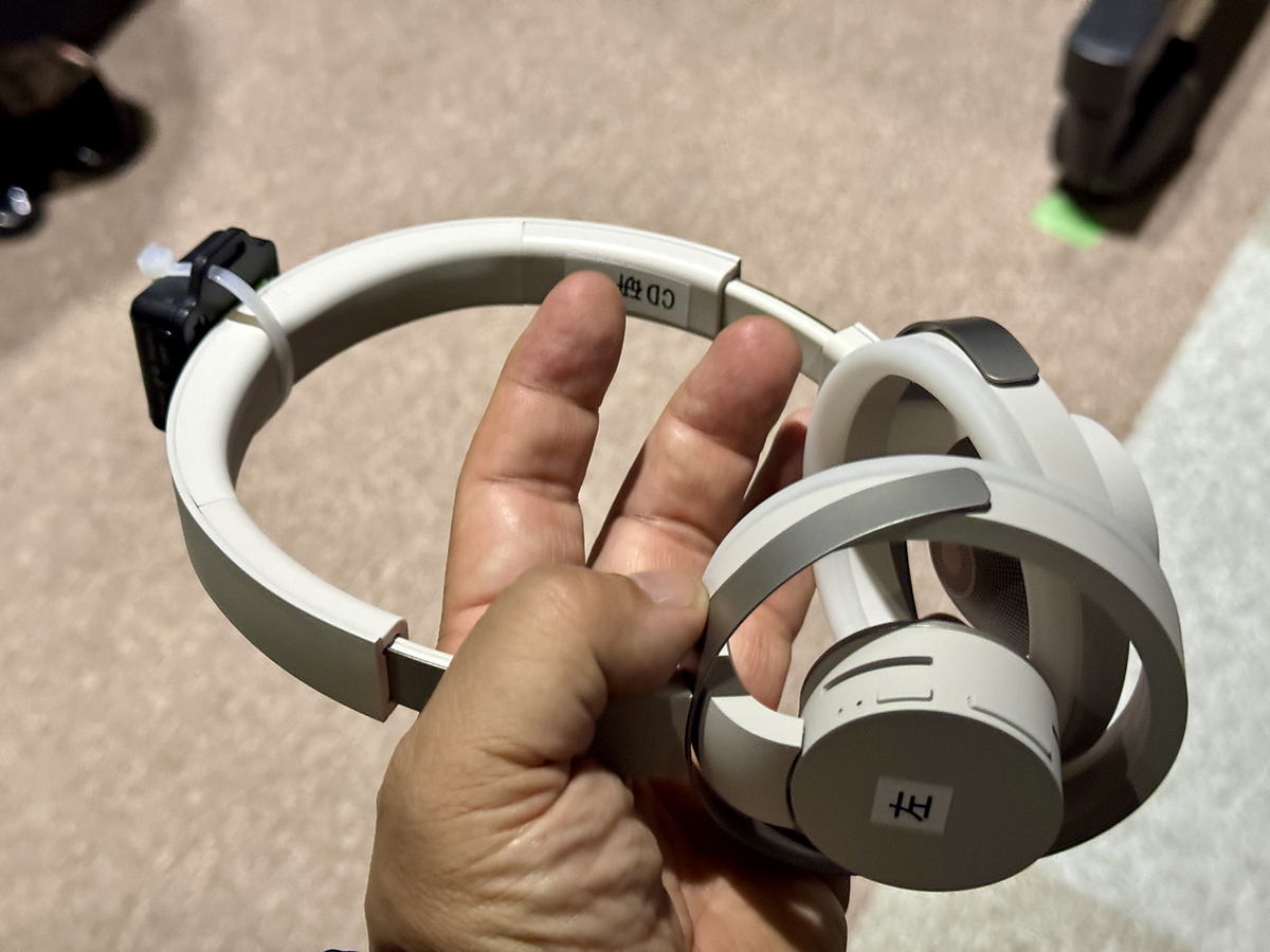 ヘッドホンは今年発売された「nwm ONE」を改造したもので、外側に3個、内側に1個の集音マイクが増設されている。普通のANCヘッドホンで言うと、おそらくはそれぞれフィードフォワードマイクとフィードバックマイクに相当すると考えられる。