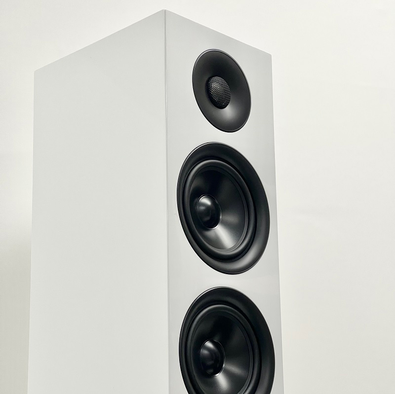 外観面では光沢の美しいピアノフィニッシュ塗装(ブラック/ホワイト)を用意。ユニットの保護と美観を兼ね備えたマグネット式グリル付属するほか、バイワイヤリングやバイアンプに対応する金メッキ仕様の大型スピーカーターミナルを装備する。