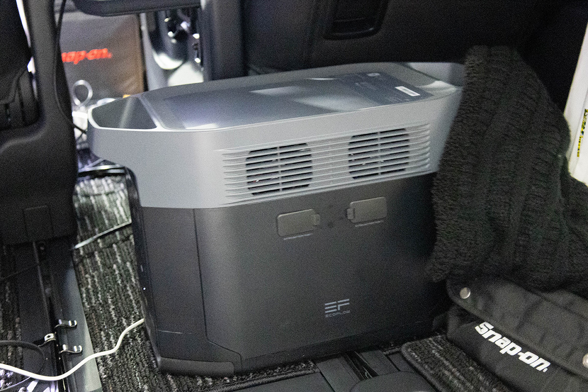 このアウトランダーのシステムチューニングを担当したのは、福井県のカーオーディオショップ・マリノサウンド。店長の岩崎潤一さんは、もう一台自社設計のトヨタ・アルファードをデモカーとして作成、ストレートはステレオ再生システムとして構築している。