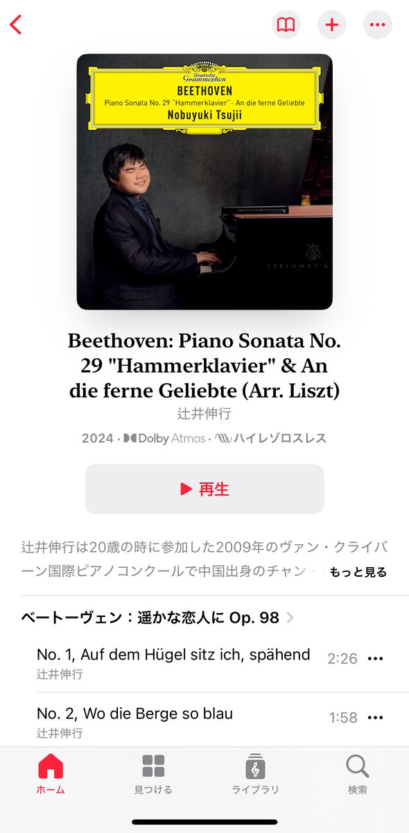 Apple Music Classicalでは、ドイツ・グラモフォンから発売された『ベートーヴェン:ピアノ・ソナタ第29番《ハンマークラヴィーア》、遥かなる恋人に』がロスレス・ドルビーアトモスの両フォーフォーマットで配信されている。また、既発売の「ショパン:ピアノ協奏曲第2番&ノクターン」についても、ドルビーアトモスで改めて配信される予定だという。