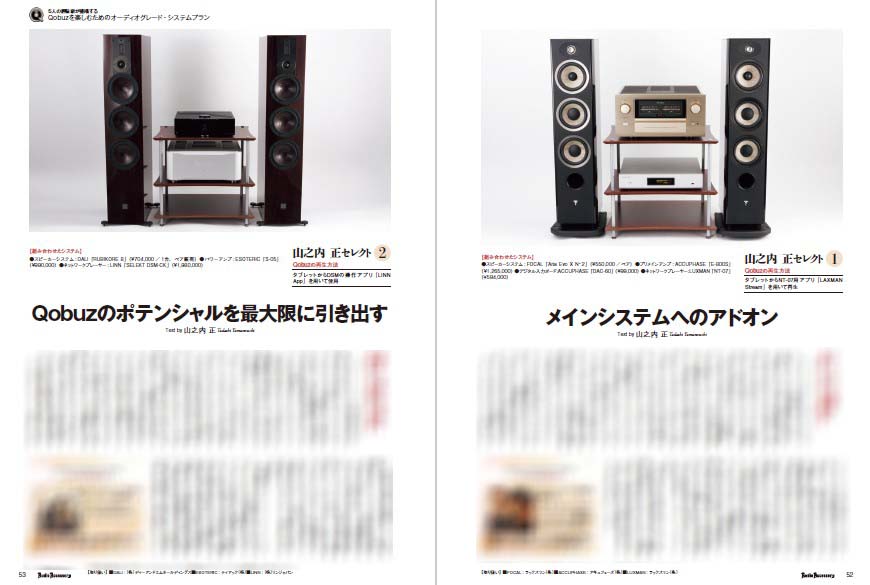 特集内の「5人の評論家が提唱する Qobuzを楽しむためのオーディオグレード・システムプラン」では、本誌でお別染みの5人の評論家が各2パターンずつQobuzをビュアオーディオ・グレードで楽しむためのシステムプランを提唱しています。