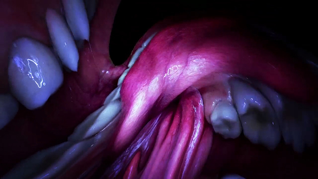 2つめの「Mouth Mantra」は、Jesse Kanda監督作品。ビョーク自らの口内とその模型を使って撮影したもので、こちらは視点を移動して体験するというよりも、口の中という普段入ることがまずありえない空間の“中にいる”という強烈な体験を味わうための映像だと感じた。