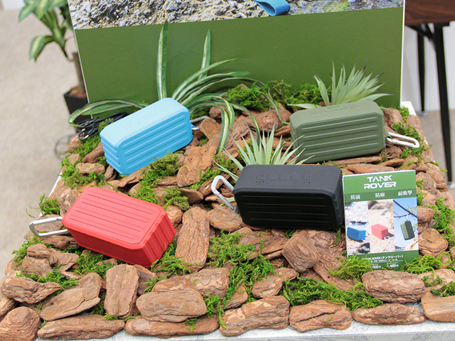 また、同ブランドからはBluetoothスピーカーの新モデルも複数を参考出展。ファブリック素材を使ったデザインコンシャスな「FABLY」、防水/防塵/耐衝撃性能を備えた「TANK ROVER」、重低音再生を重視した「INBASS」という3モデルを発売予定であることを明らかにした。