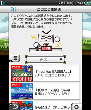 3DSのニコニコアプリ、「ニコニコ生放送」の公式生放送に対応