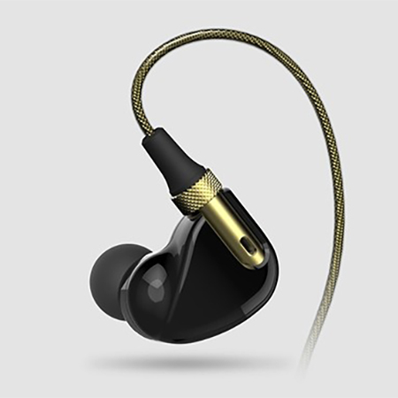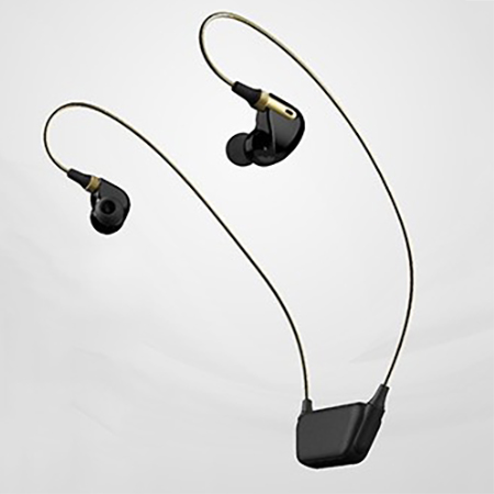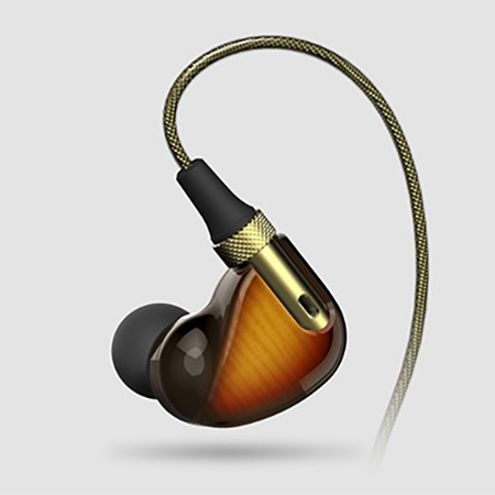 本体は耳へのフィット感向上を図ったデザインを採用。ブッシング部はアルミ素材にローレット仕上げを施し、パワードミキシングボックスはギターアンプのような質感を目指した。また、ケーブルにはゴールドの編組コードを採用するなど、高級感のある仕様となっている。