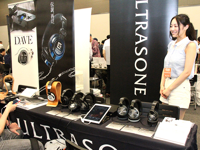 タイムロードは、ULTRASONEのヘッドホン「Tribute 7」をメインにフィーチャーした試聴デモを実施している。ブース内には、同じく同社が取り扱うCHORDの「DAVE」も用意し、ポータブルだけではなく据え置きのハイエンド環境でもヘッドホン再生を楽しむスタイルをアピールしている。
