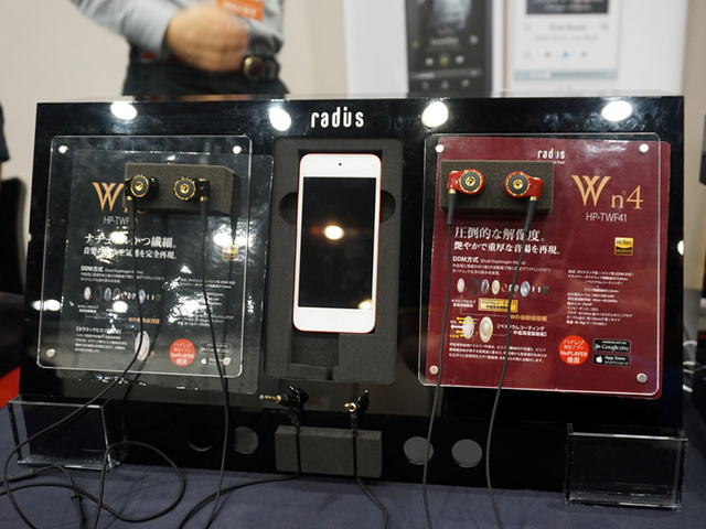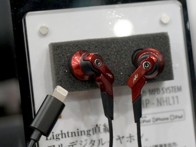 ラディウスは、USB-DAC/ヘッドホンアンプ「AL-LCH81K」や、デジタルイヤホン「HP-NHL11」を用いて、LightningでiPhoneに直接接続できるソリューションをアピール。Lightningを採用した外部ストレージ「AL-LCS12/11」も展示している。